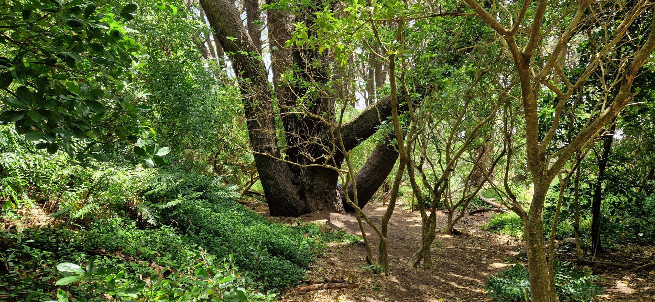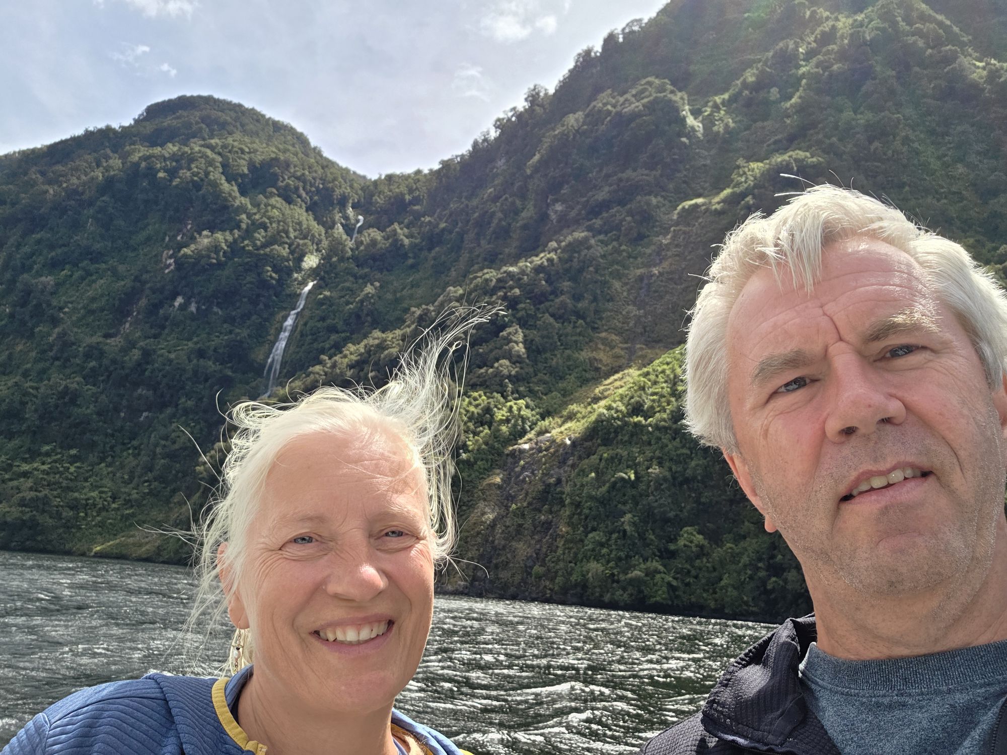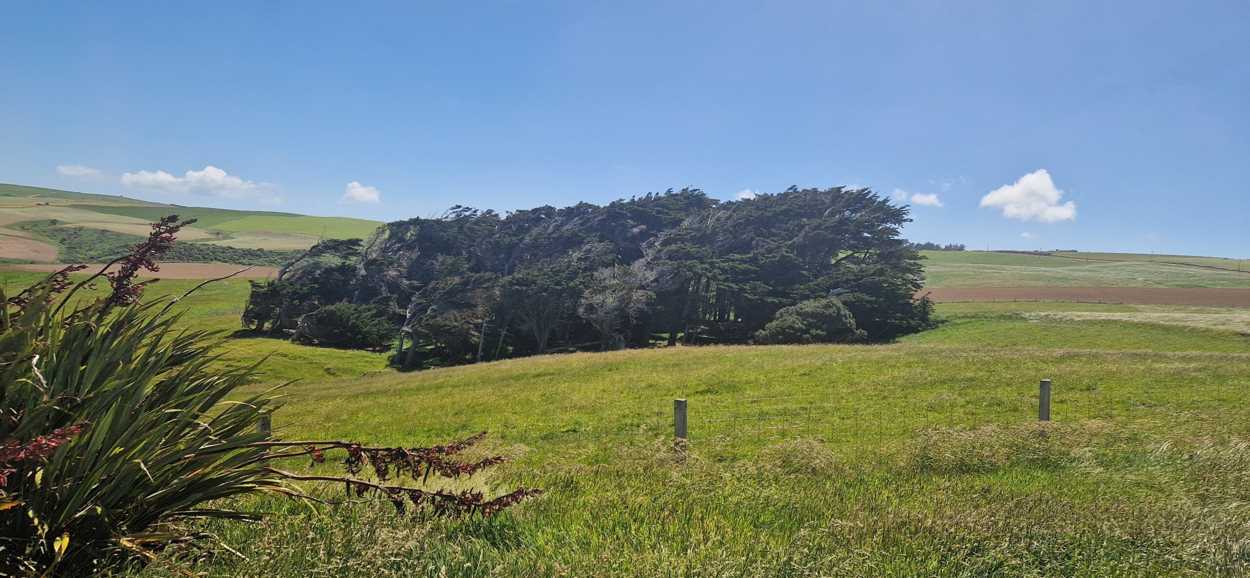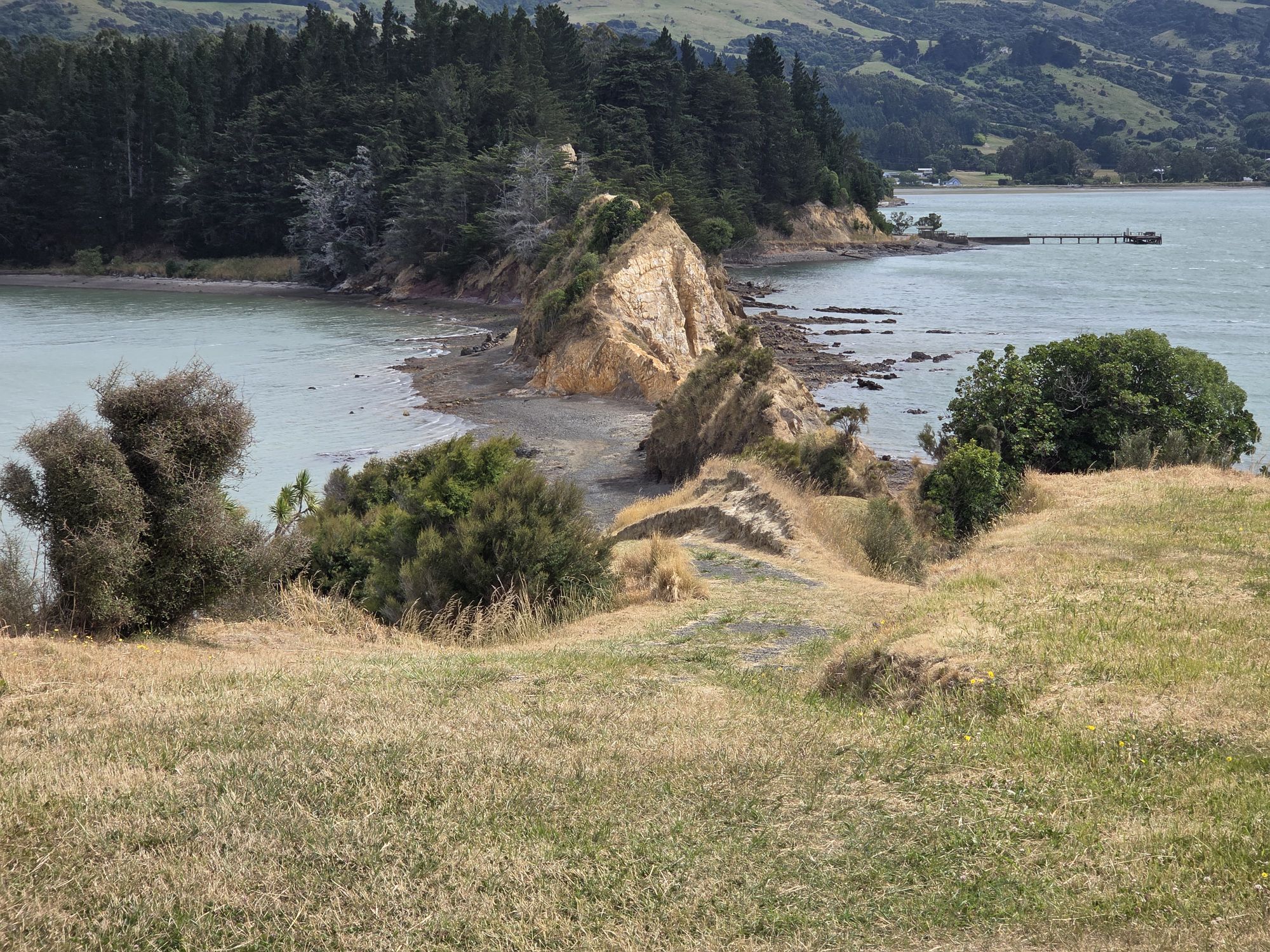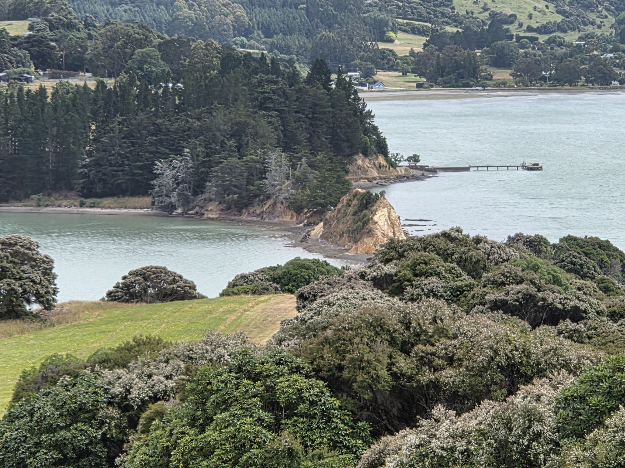 Så vi nød formiddagen på Pigeon bay, gik tur op til en skov og en kirkegård med fin udsigt ud over fjorden.