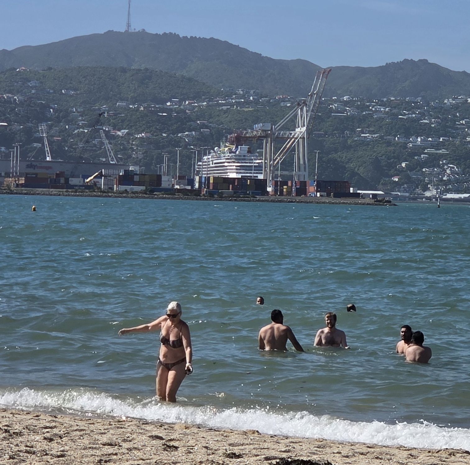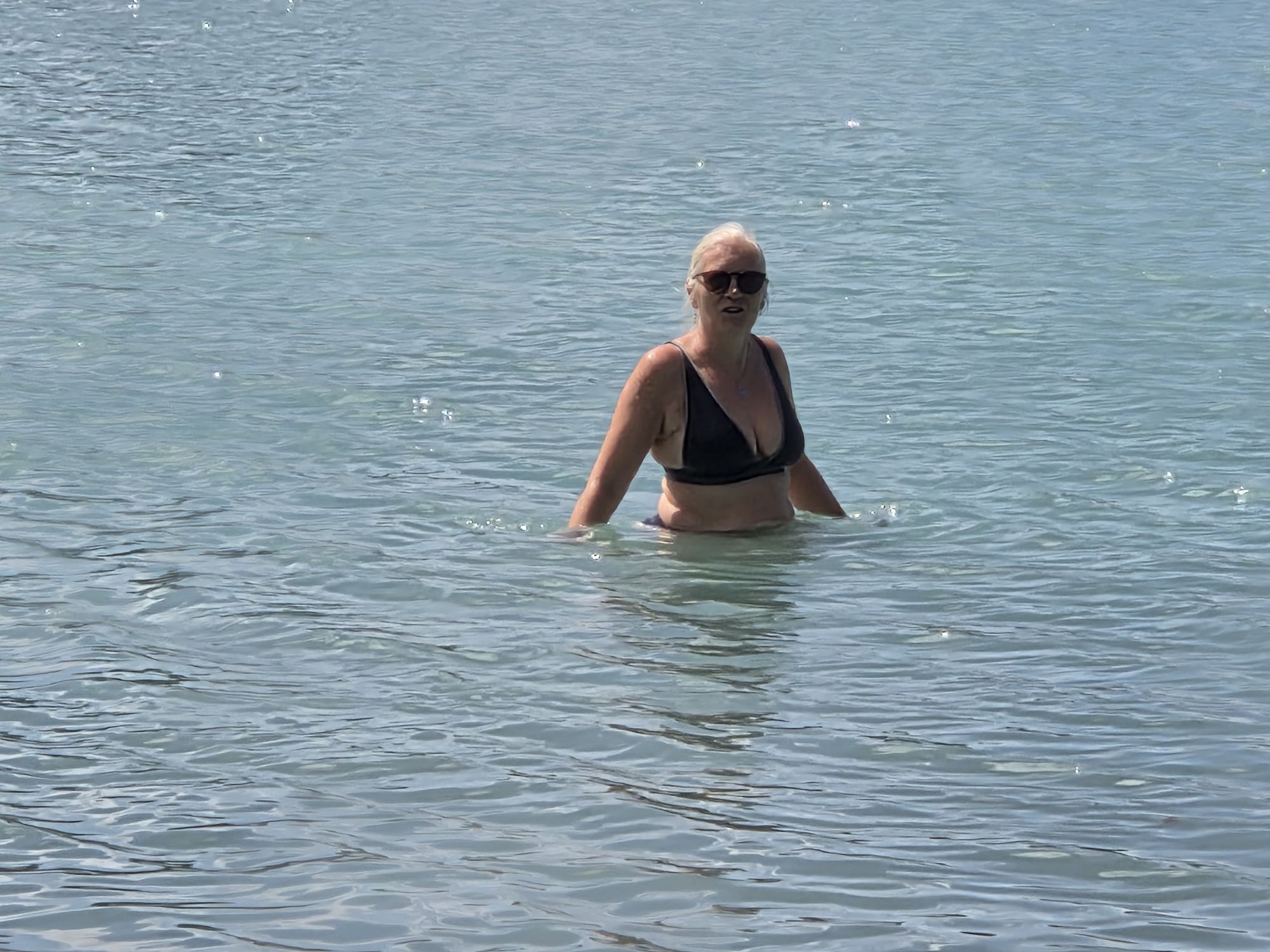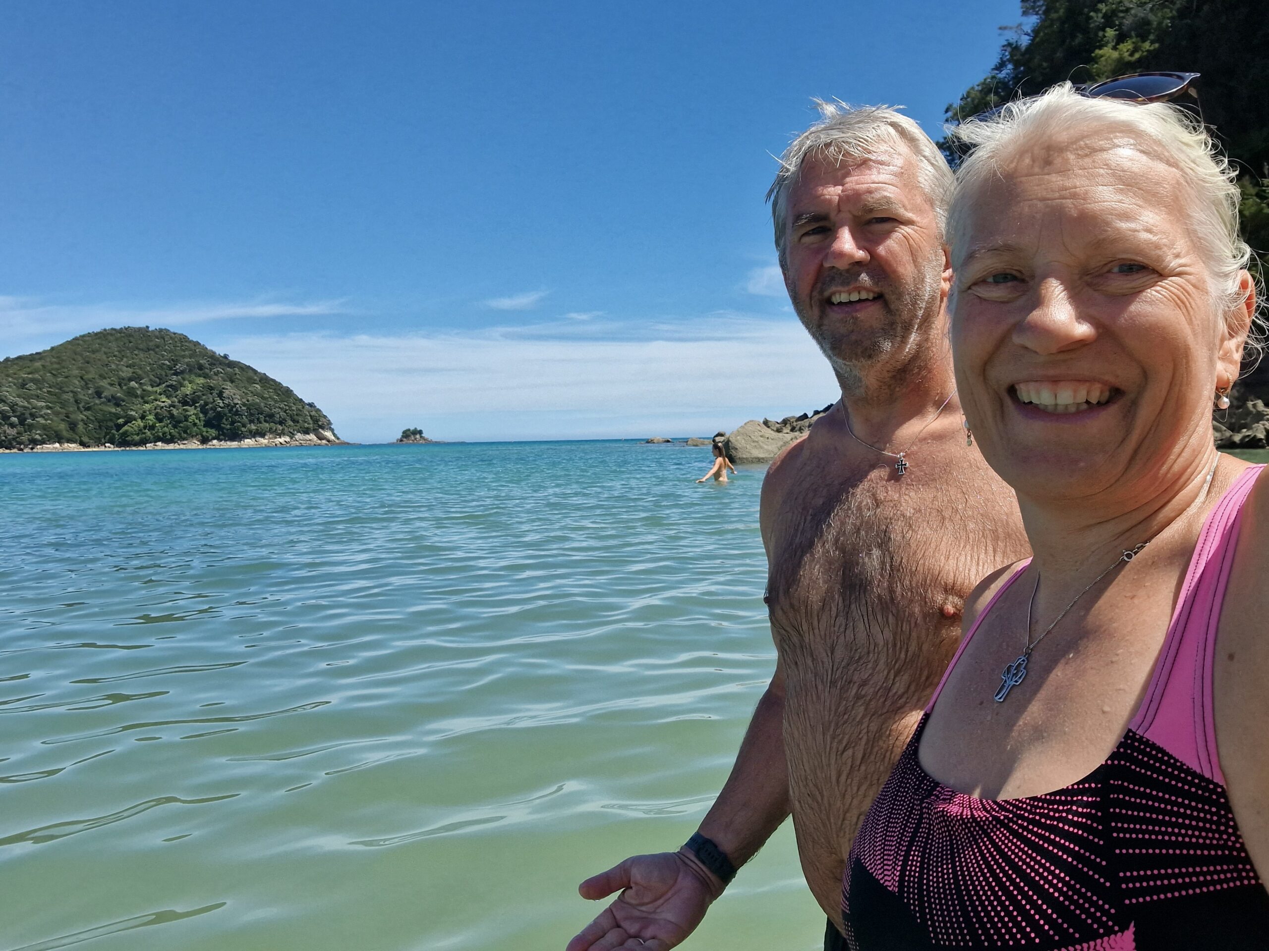 Vi sagde farvel til Pigeon bay med en svømmetur. Midt på eftermiddagen.