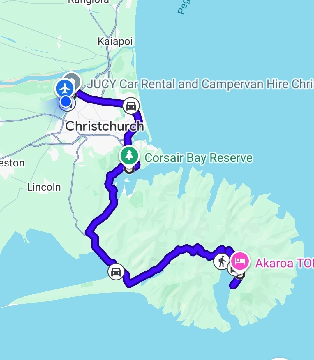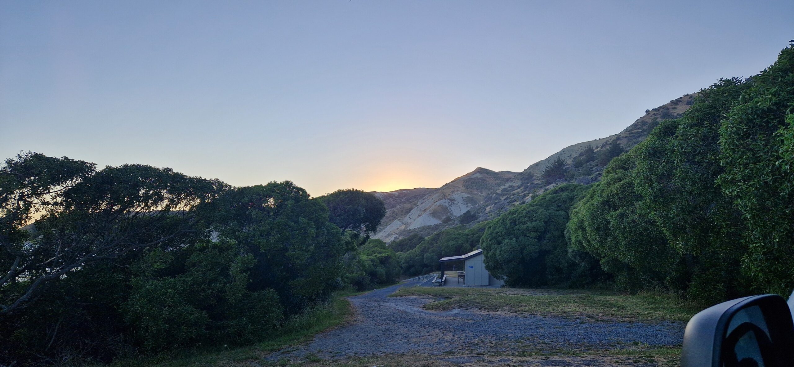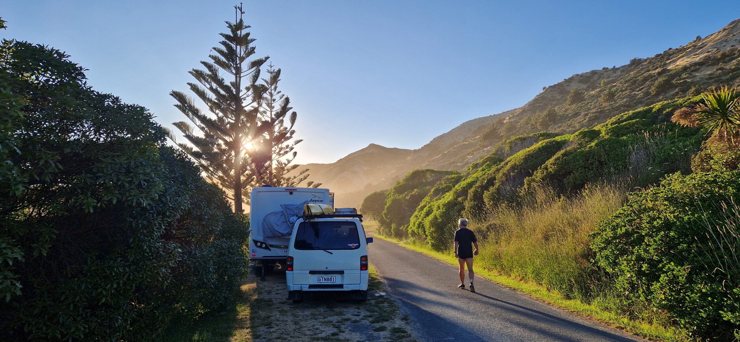 Vi skulle blot på den anden side af halvøen, til Akaroa, op over bjerge med en del hårnåle sving. Til den sammeplads som vi begyndte med her på sydøen.