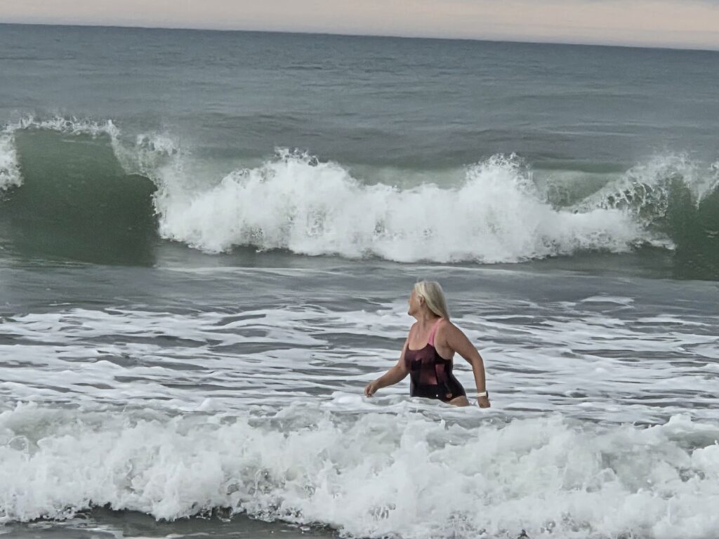 Morgen var fugtig fra regnen og blæst hele natten, men alligevel hoppede vi i de store bølger fra syd.