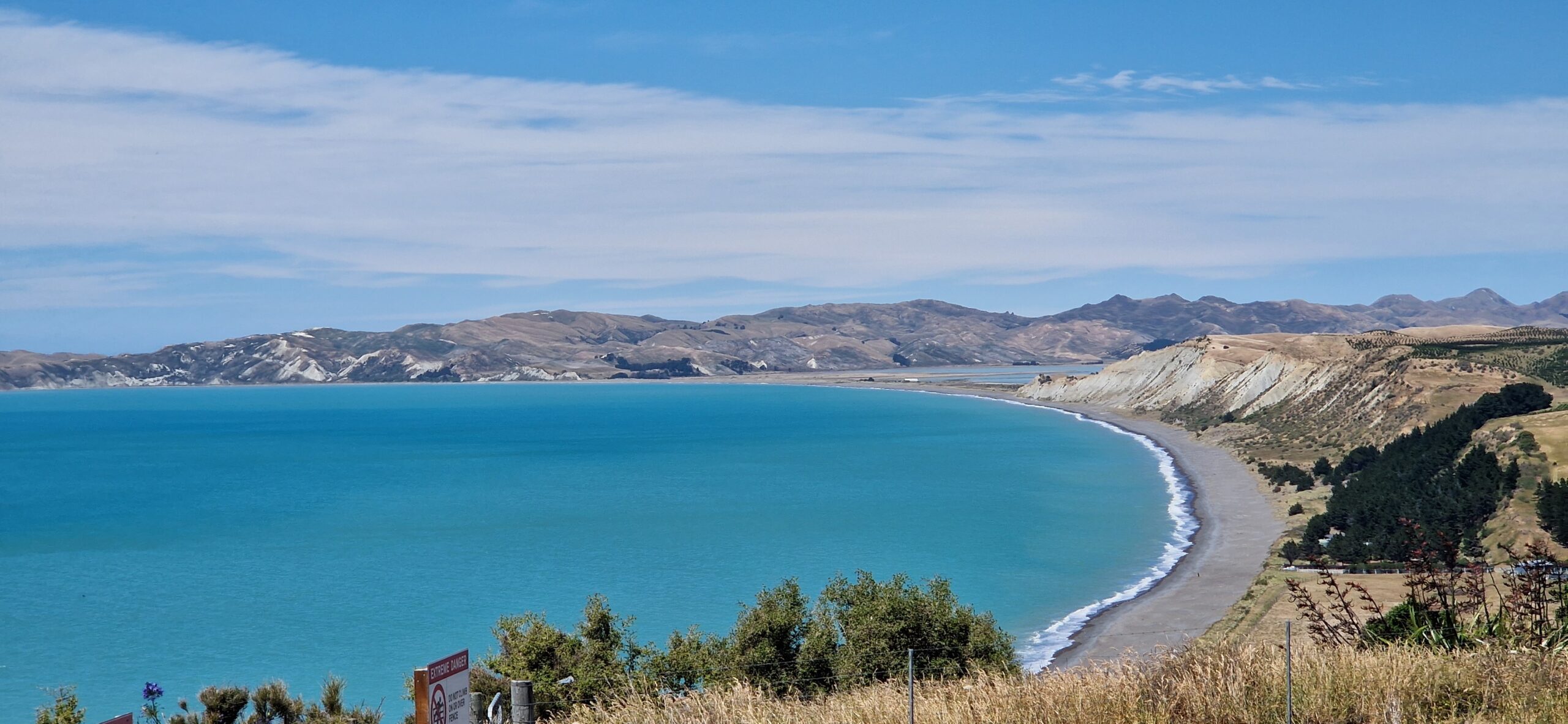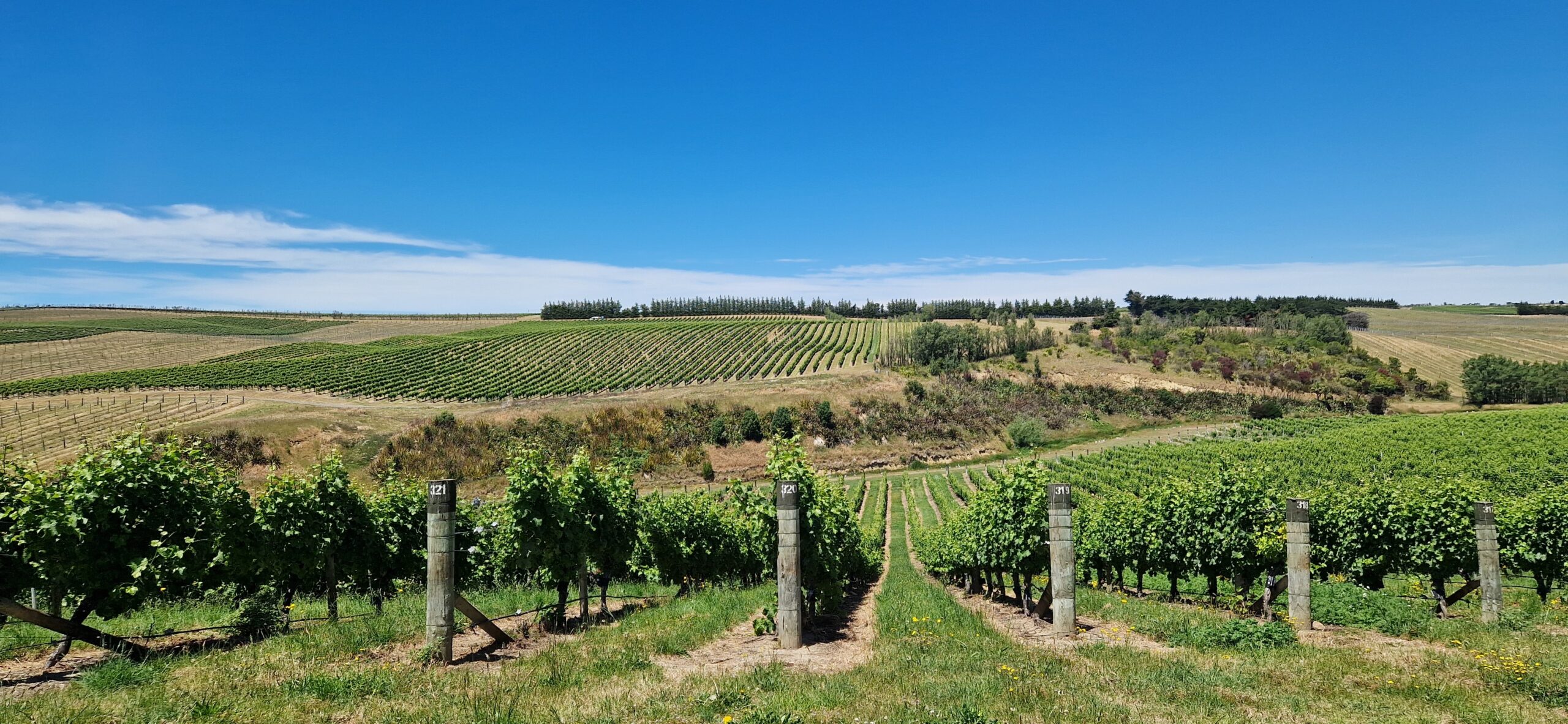 Udsigten fra vinmarkerne over til Marfells beach hvor vi sov i nat