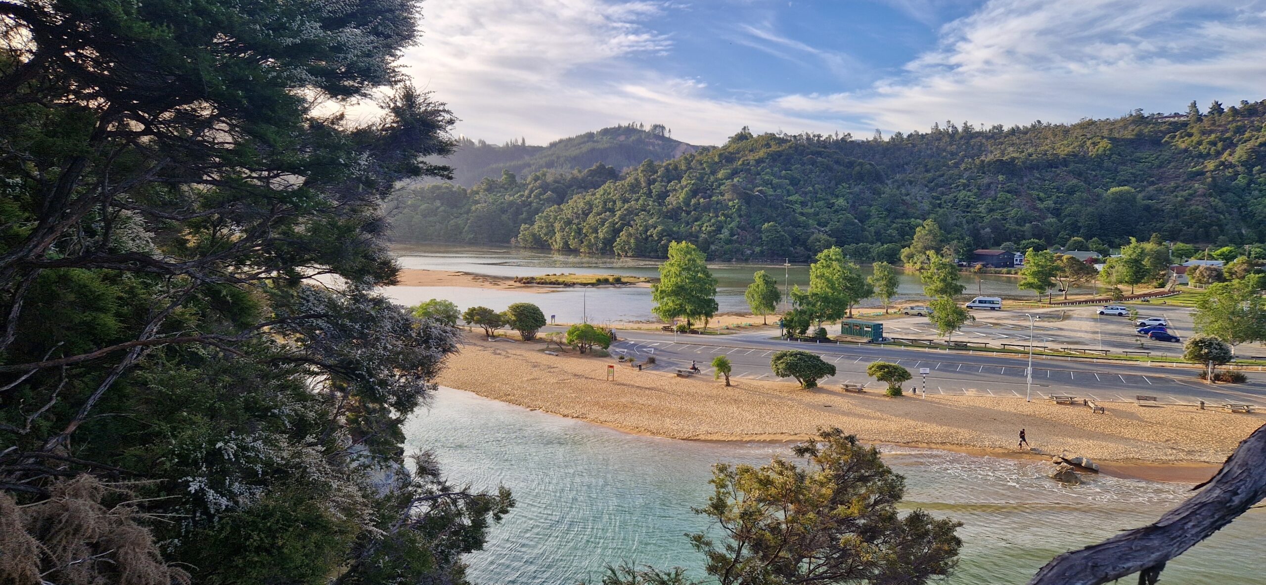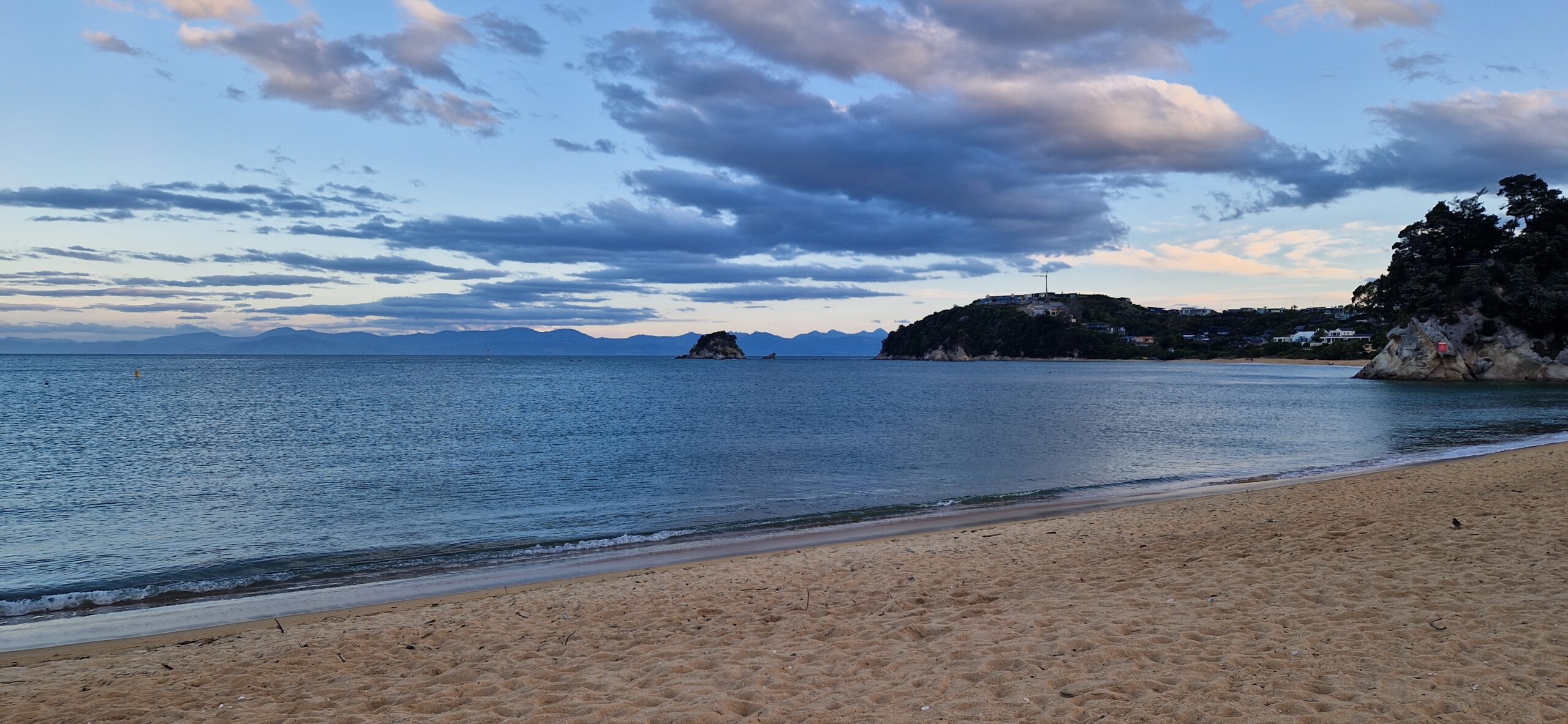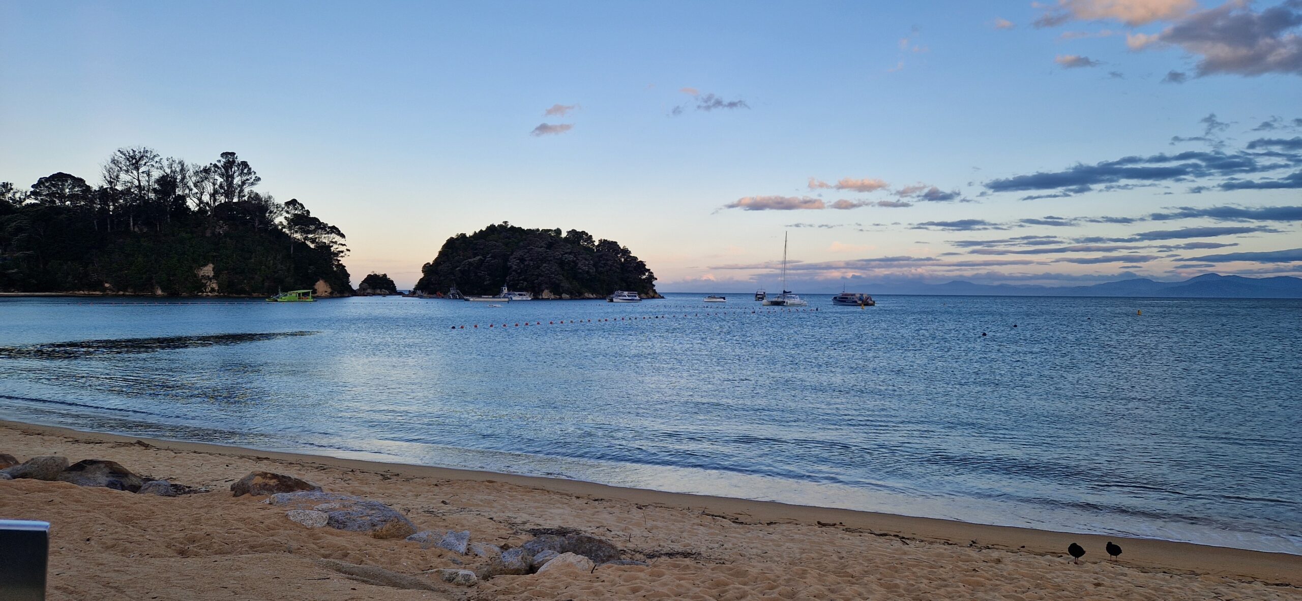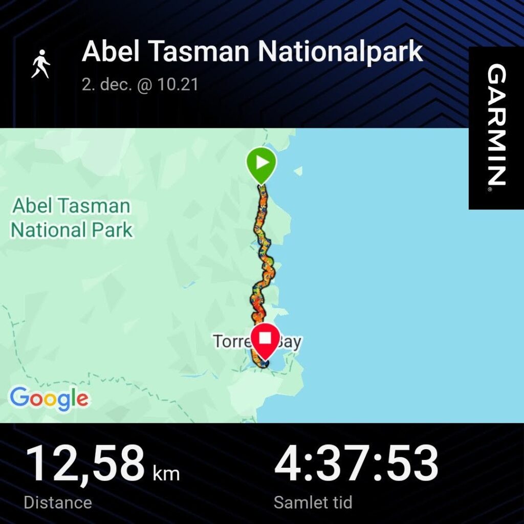 Da vi var mætte forlod vi baren for at gå ned at se på stranden inden det blev sengetid. På vej over parkeringpladsen, mødte vi forførste gang en dansker. Det blev til en retlang snak bare der på parkeringspladsen med Mette fra Horsens. Som var på 6 ugers tur til NZ. Hun var også nettop kommet til Kaiteriteri, hun skulle med samme tur i morgen som vi også lige havde købt. Så det blev til – vi ses i morgen.
