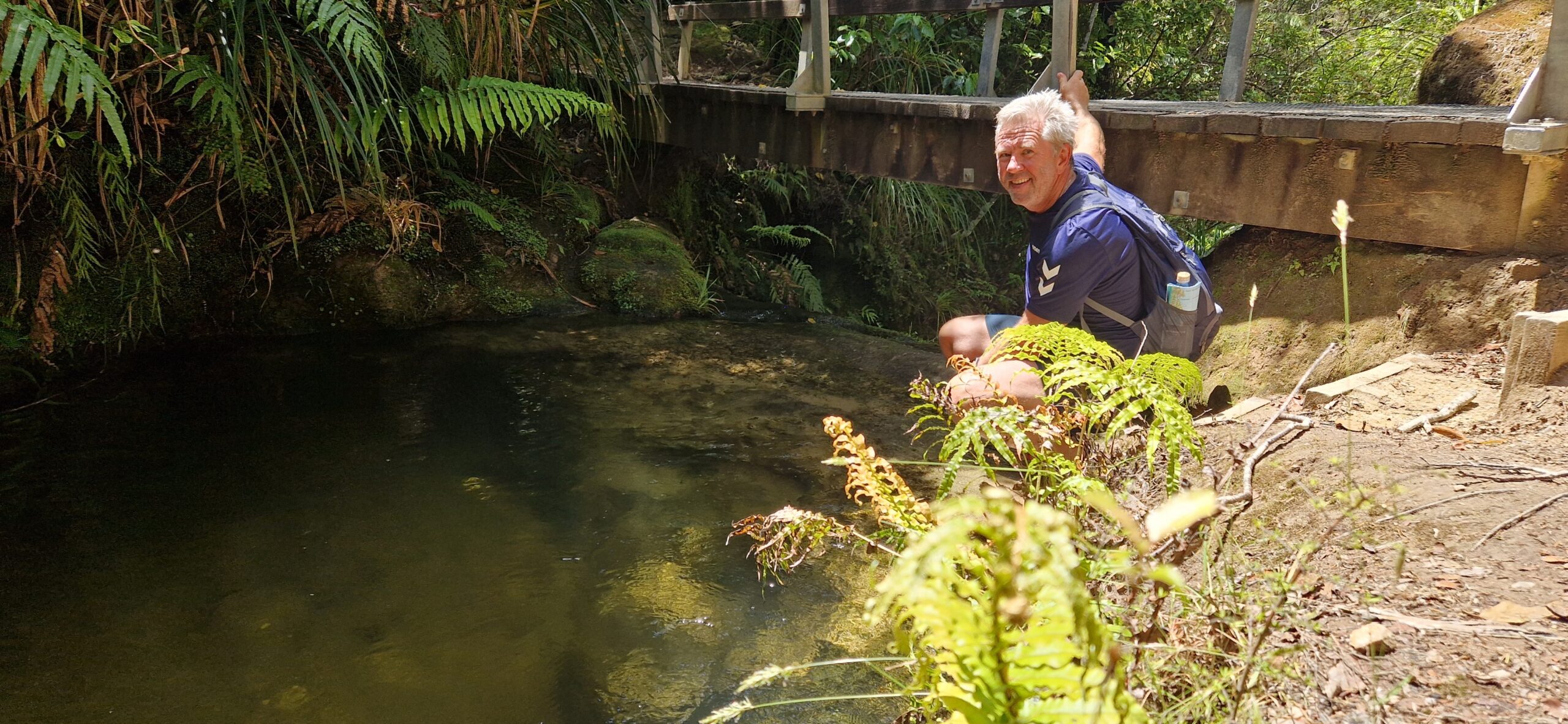 Vi endte dagen ved en sø: Häwea på Kidds Bush campsite.