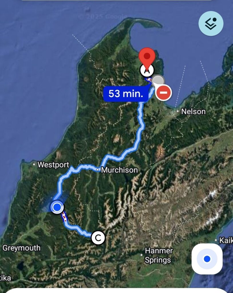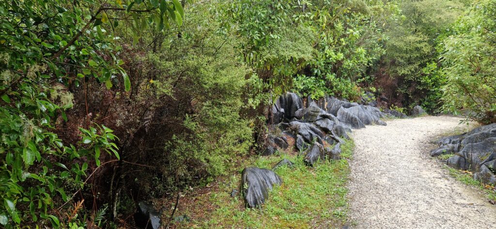 Så blev det tid at tage videre fra Kaiteriteri og tage mod syd-vest, planen var at kører en afstikker for at se Harwoods hole. Det var udfra en anbefaling vi fik i Perth. Vejret var slået om til regn, og dermed køligt i forhold til igår.