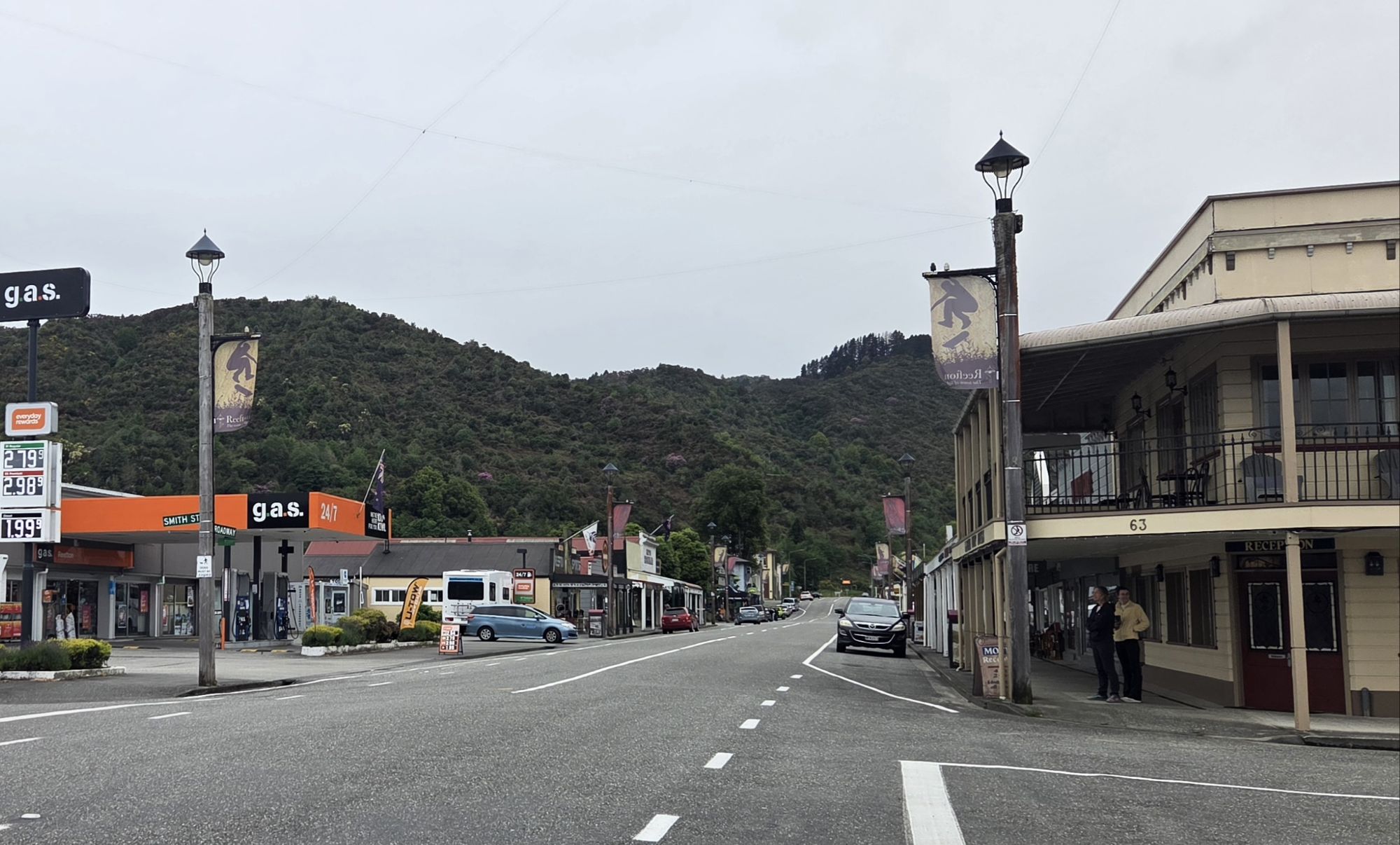 Det gik godt med at komme til Reefton, så vi kunne inspicere den free camp plads vi havde udset og handle lige rundt om hjørnet.