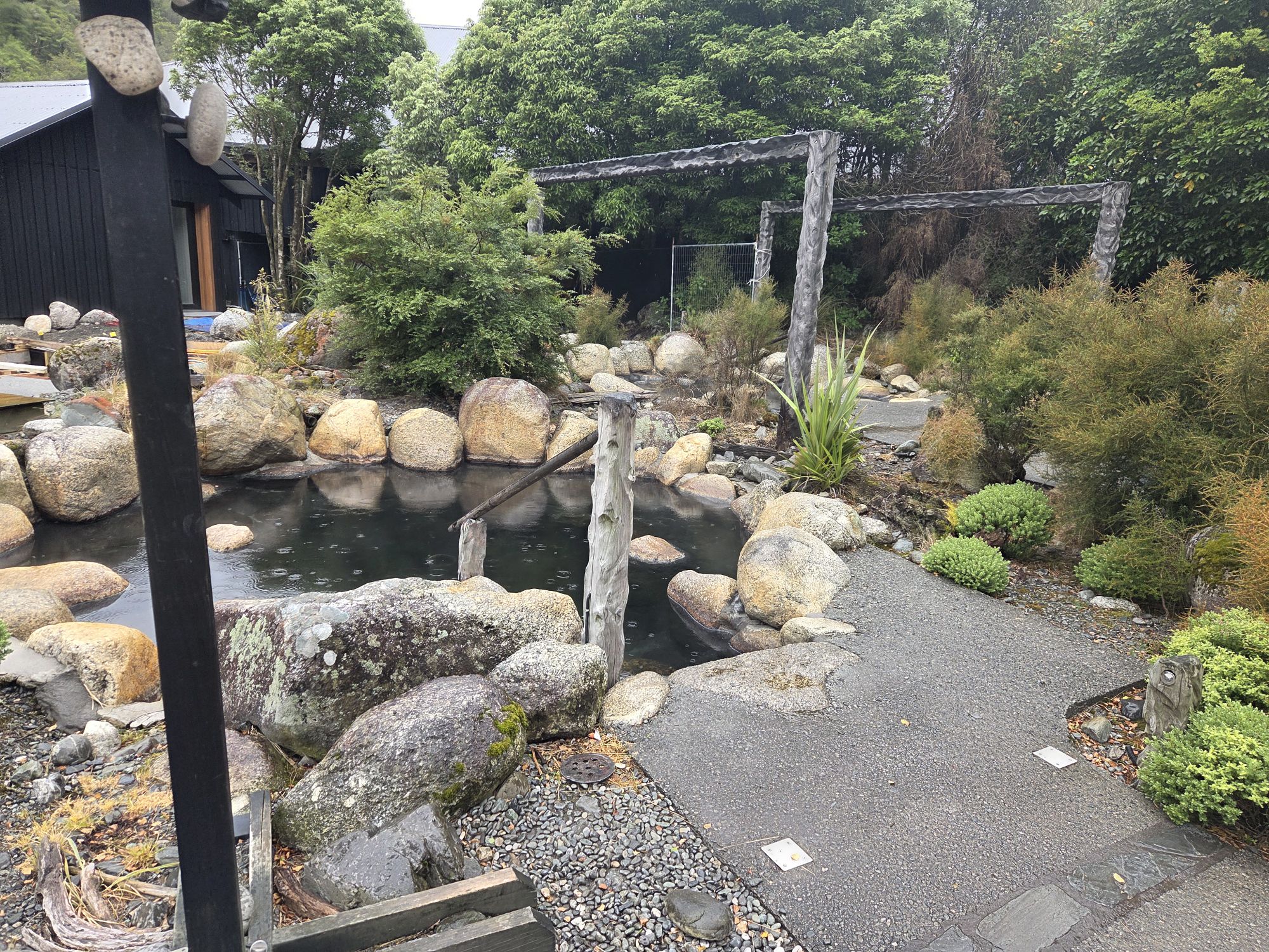 Her havde de udendørs varme bade (36,37 og 38 grader varme) og sauna.