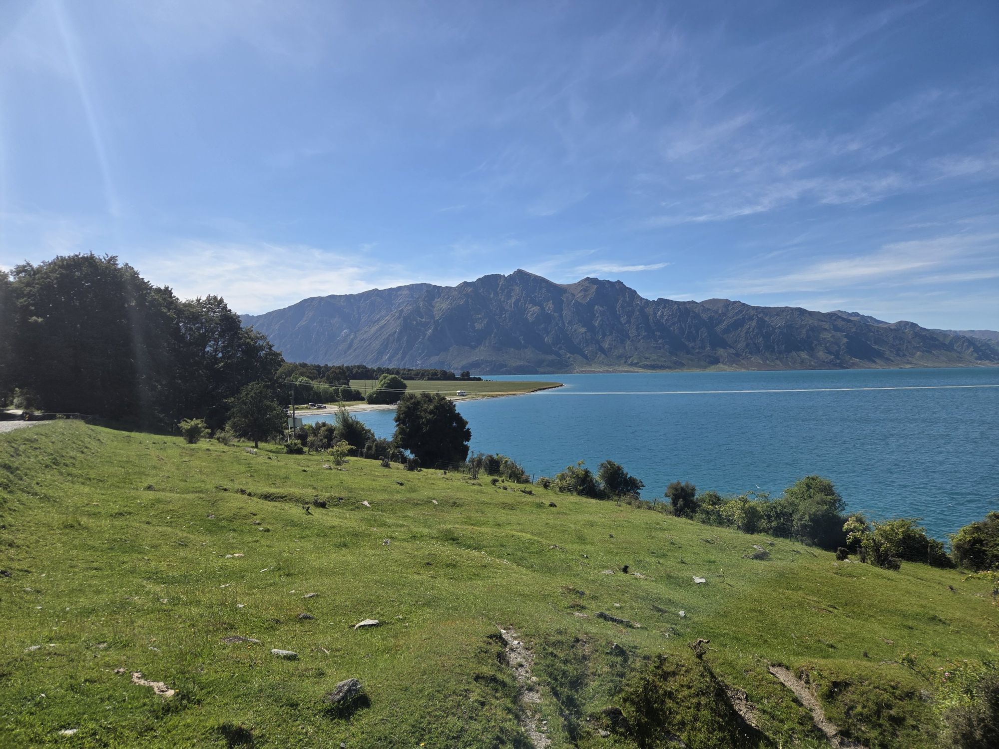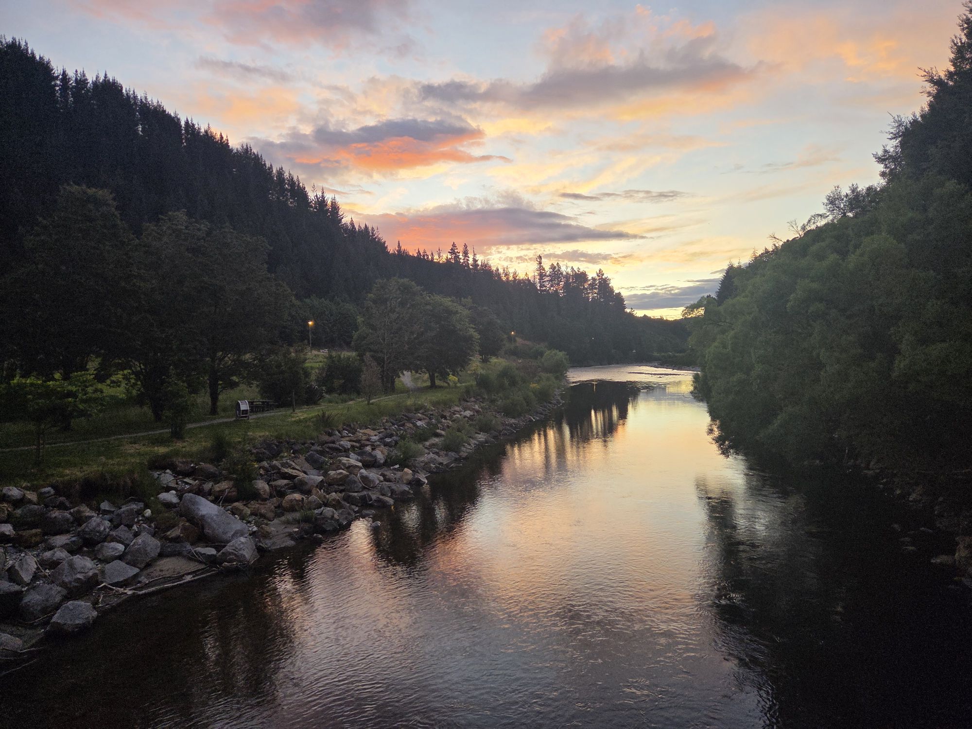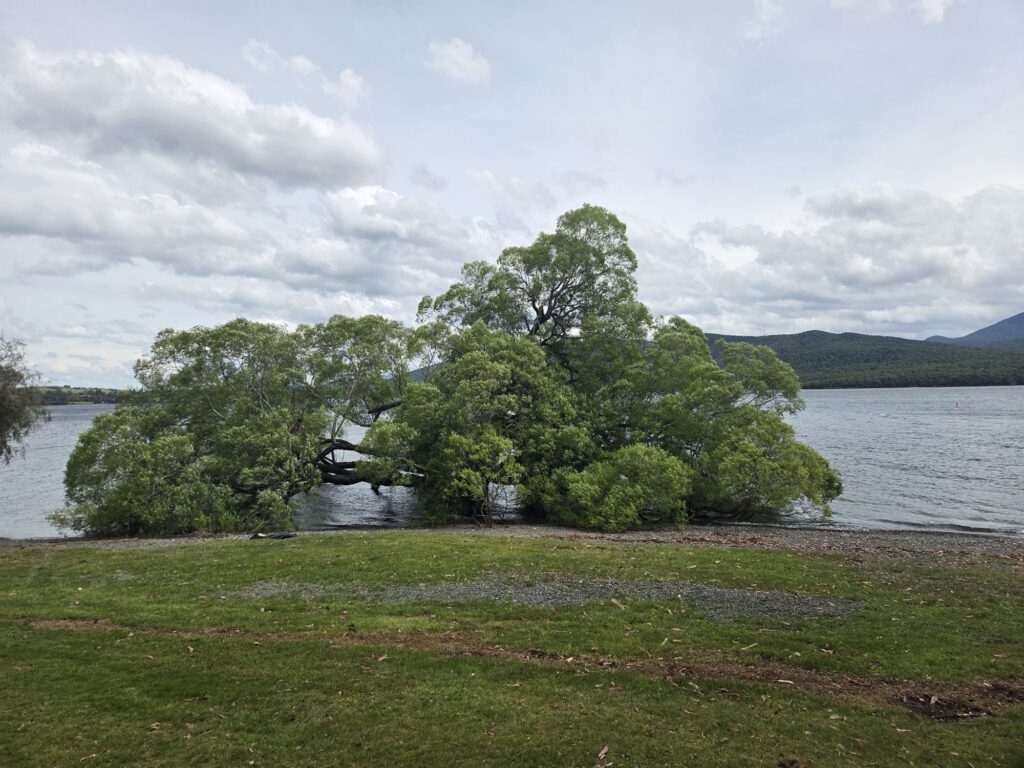 Vandet i søen var kommet gennem et vandkraftværk, som vi lige gik forbi på en tur hvor vi også passerede NZ nationale kaproningsbaner.