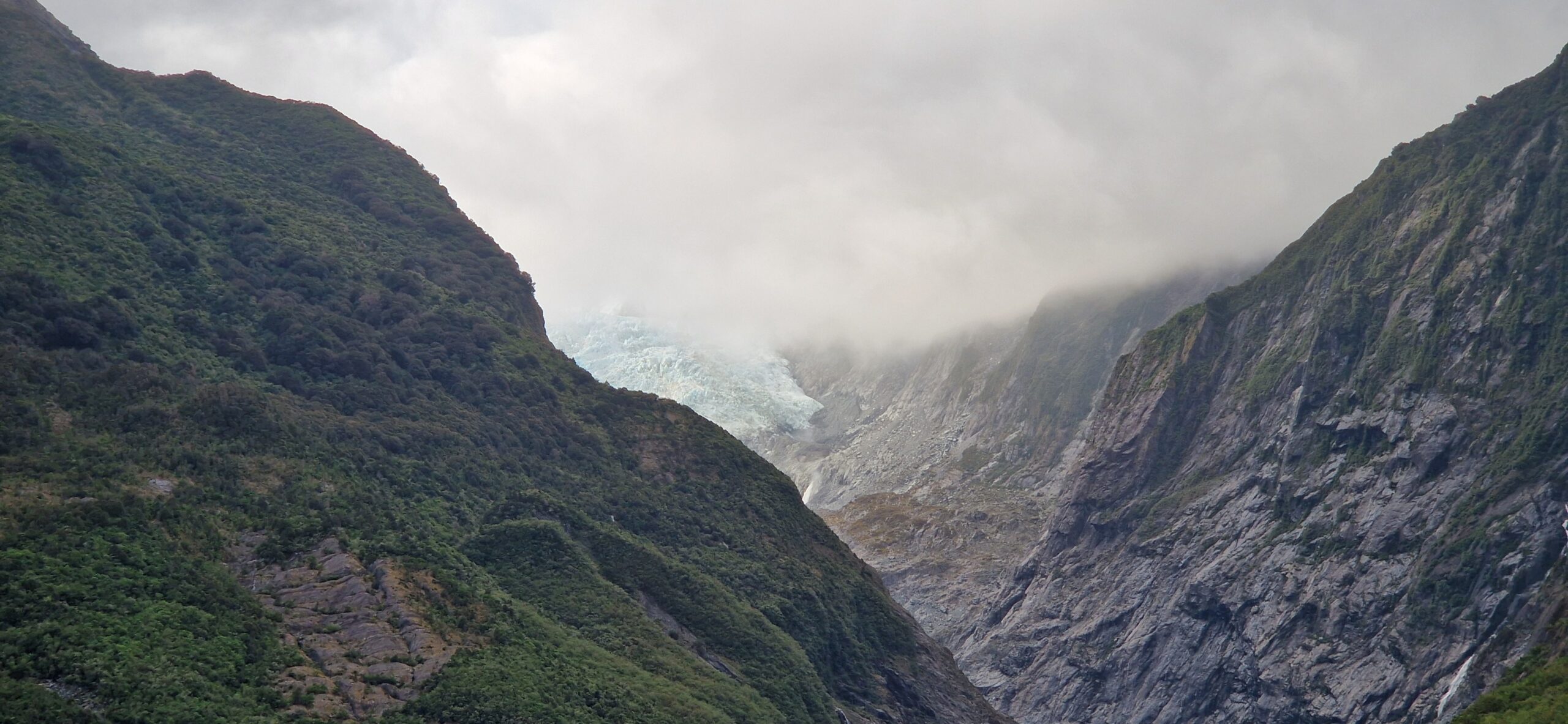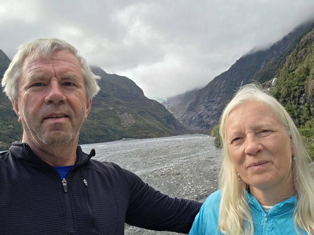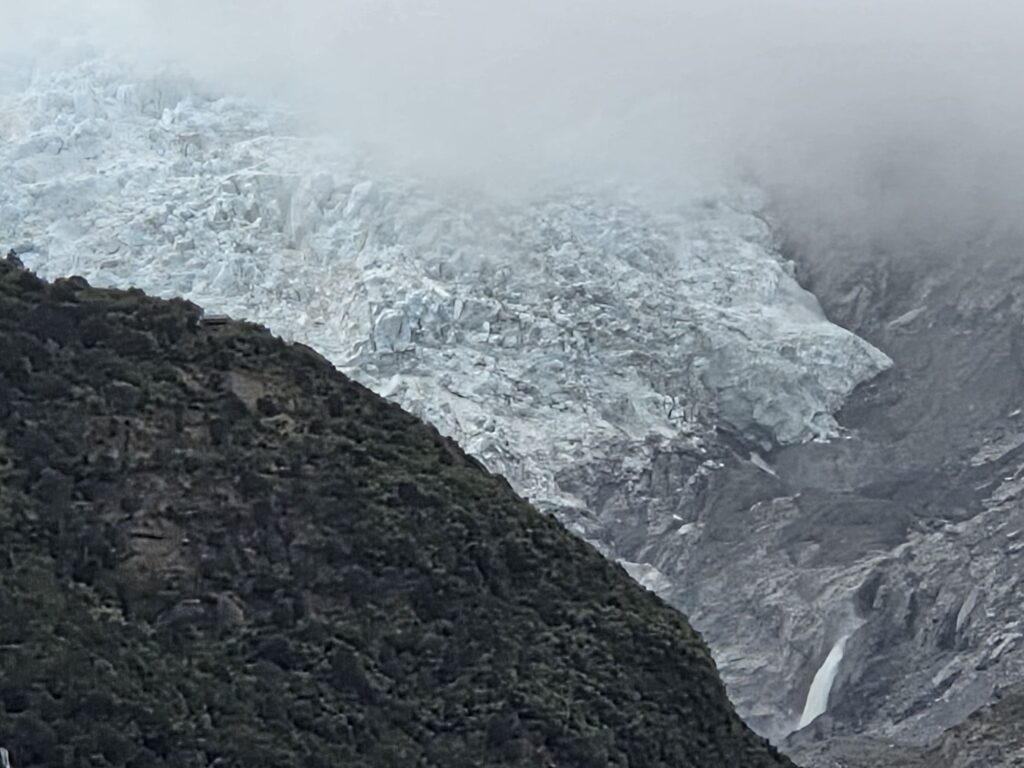På trods af flere forsinkende vejarbejder kom vi til Franz Josef kl1330 -men vores helikopter tur var aflyst pga vejret…der var skyet på toppen. Vi valgte at vente til kl 17..men der var stadig skyer der aflyste turen.