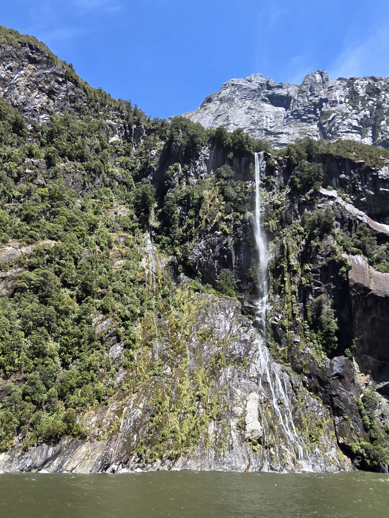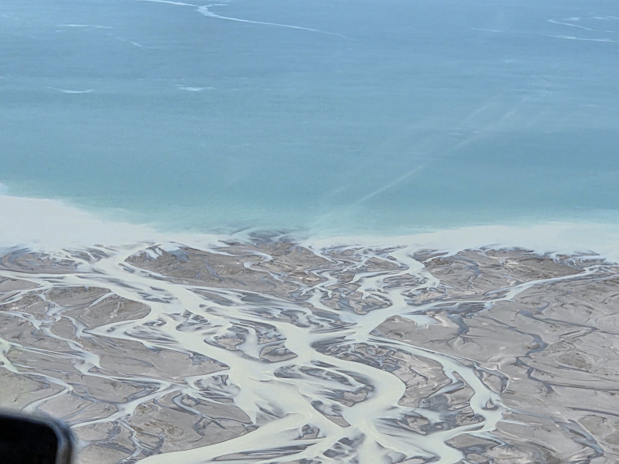 Ufatteligt blåt vand, som komme oppe fra gletsjeren. Der var ret koldt – og da vi jo havde været i vandet i dag sprang vi over her.