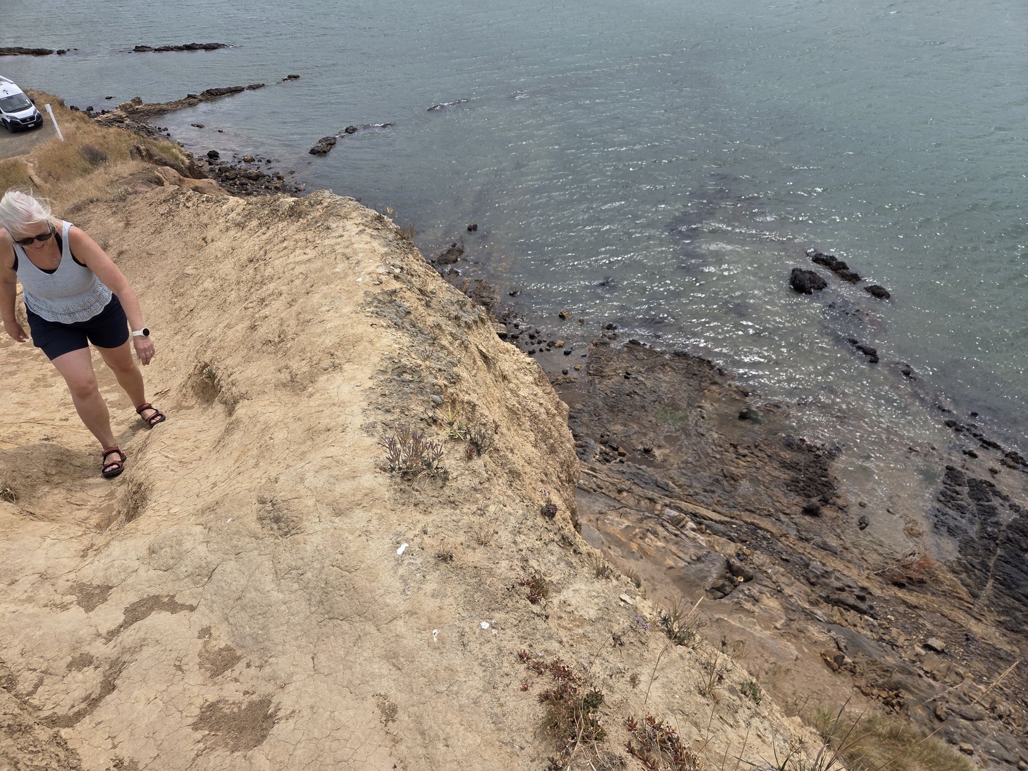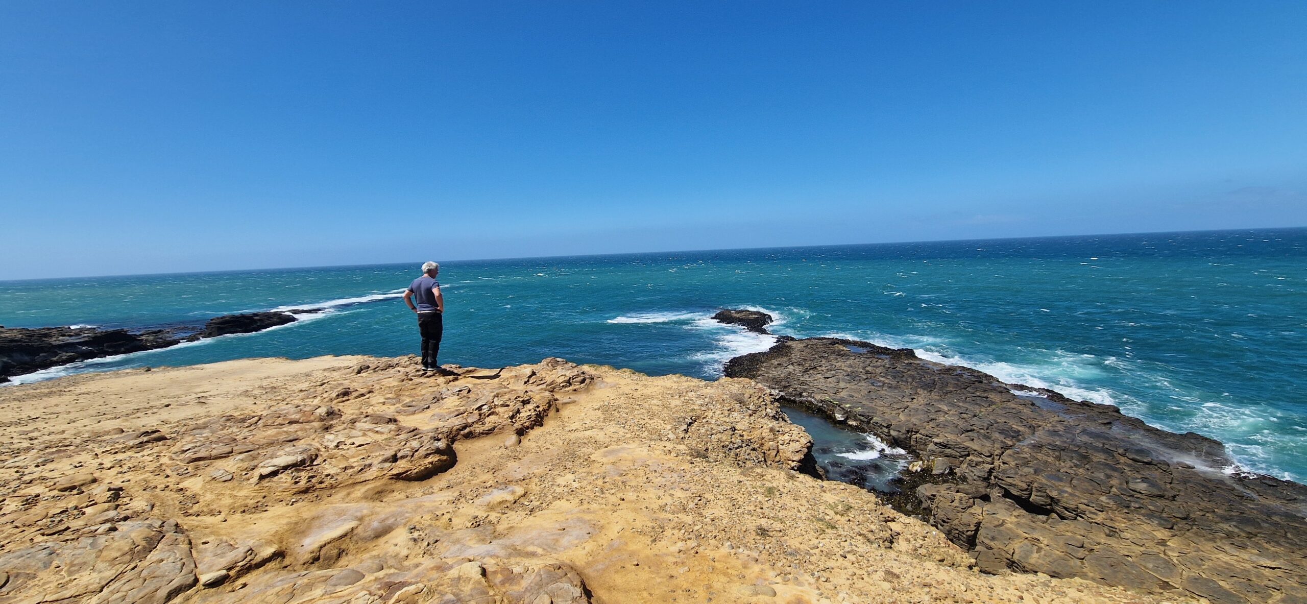 Tæt ved opdagede vi dog et udkigspunkt, som var ret flot bla. med nogle særlige klipper og jordfaldshuller. Hawkes Lookout walks