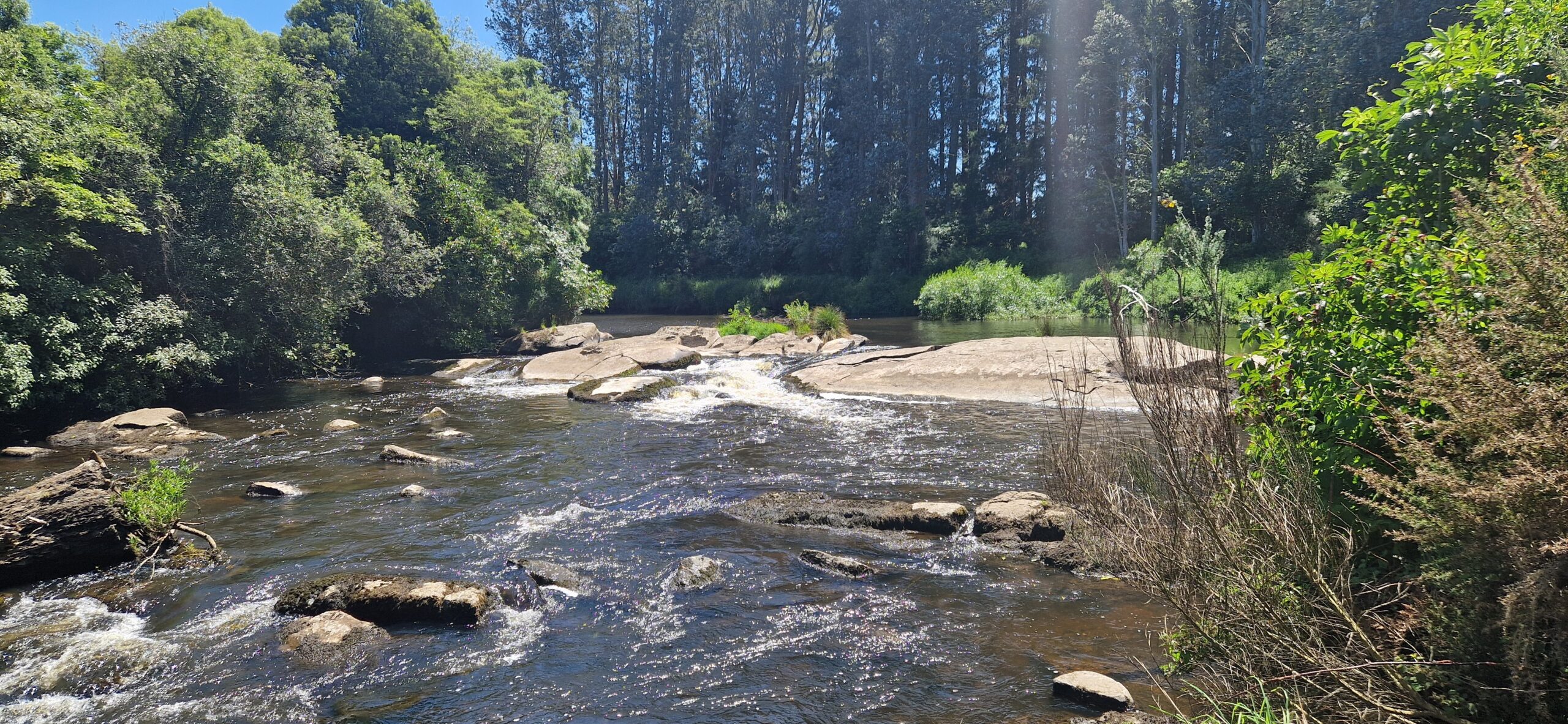 Fra de blå søer kørte vi mod østkysten og fandt en freecamping nær en å og en skov.