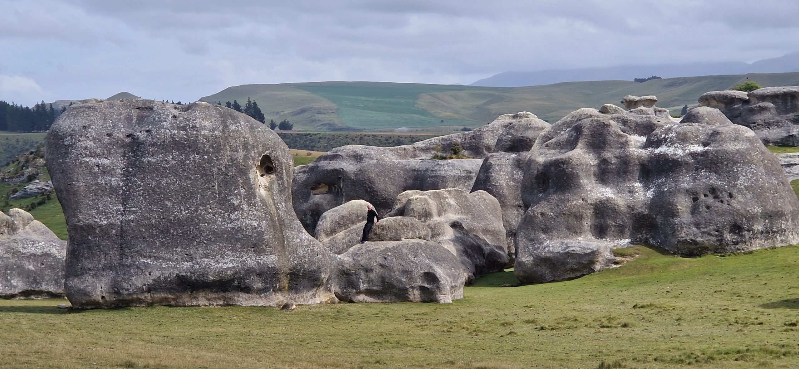 Kl. 8.30 var vi ude af pladsen, planen var at kører lidt ind i landet igen i retning mod mt. Cook. Undervejs opdagede vi at vi skulle se noget der hedder Elefant rock