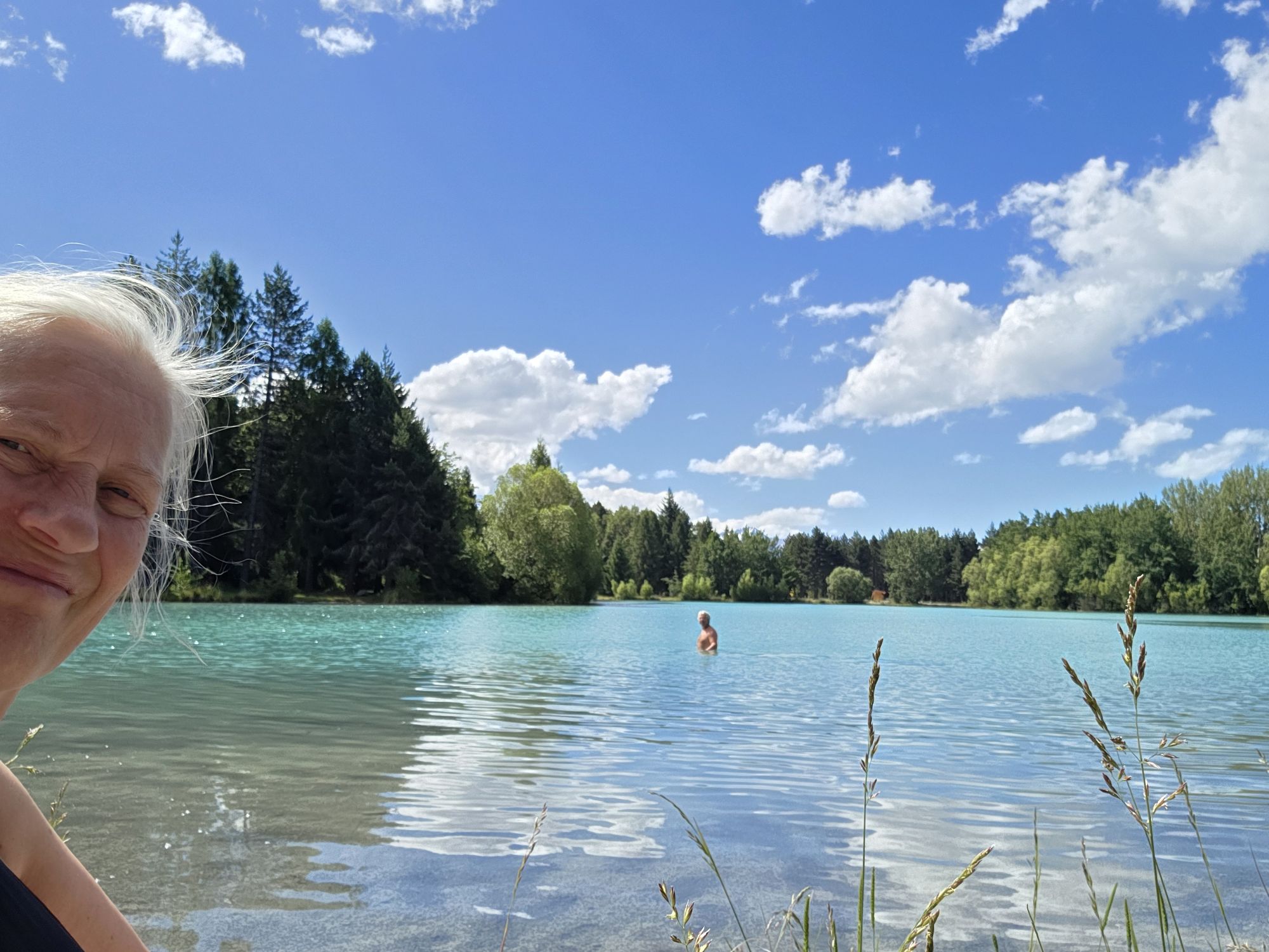 Efter gåturen hoppede vi i søen for at blive kølet ned.