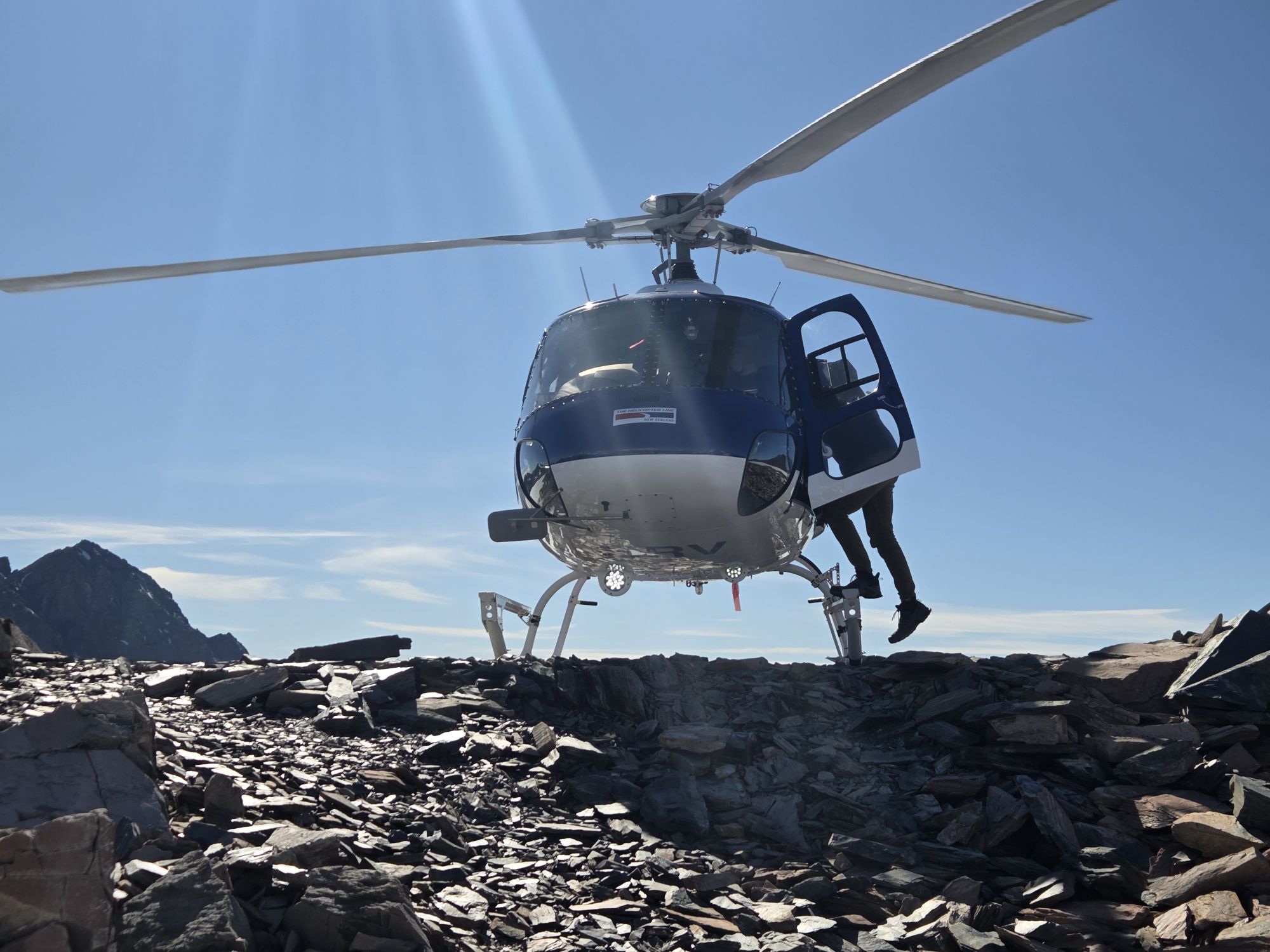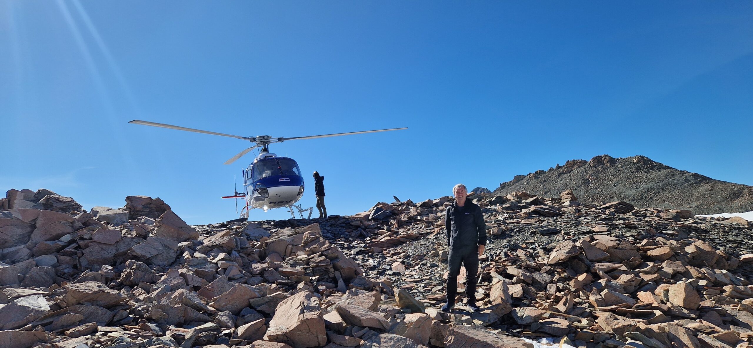 Piloten lande helikopteren så vi kunne gå ud og tage billeder, Finn i forgrunden