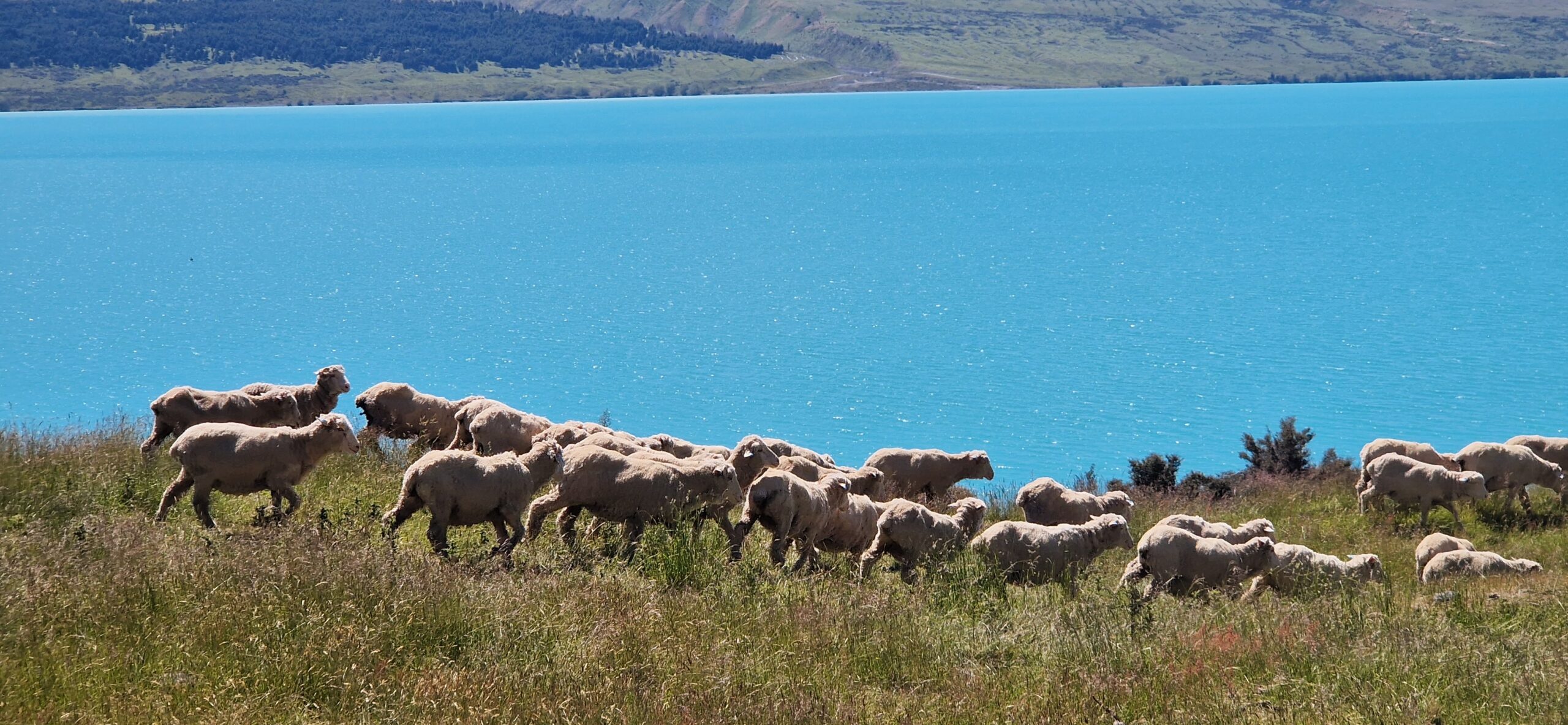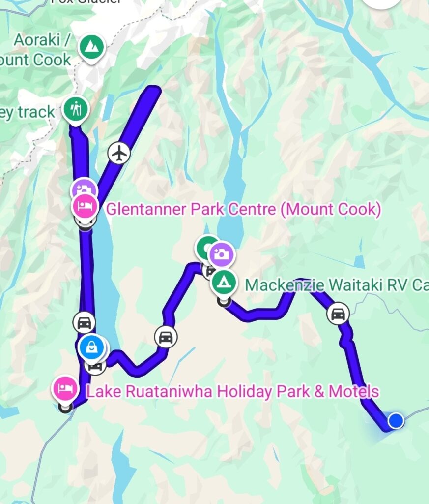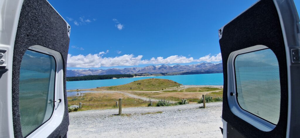 For enden af søen Pukaki havde vi næste stop. Igen flere billeder det smukke blåvand i søen skyldes cedimenter som følger med ud i vandet når der sker afsmeltning fra gletcheren.