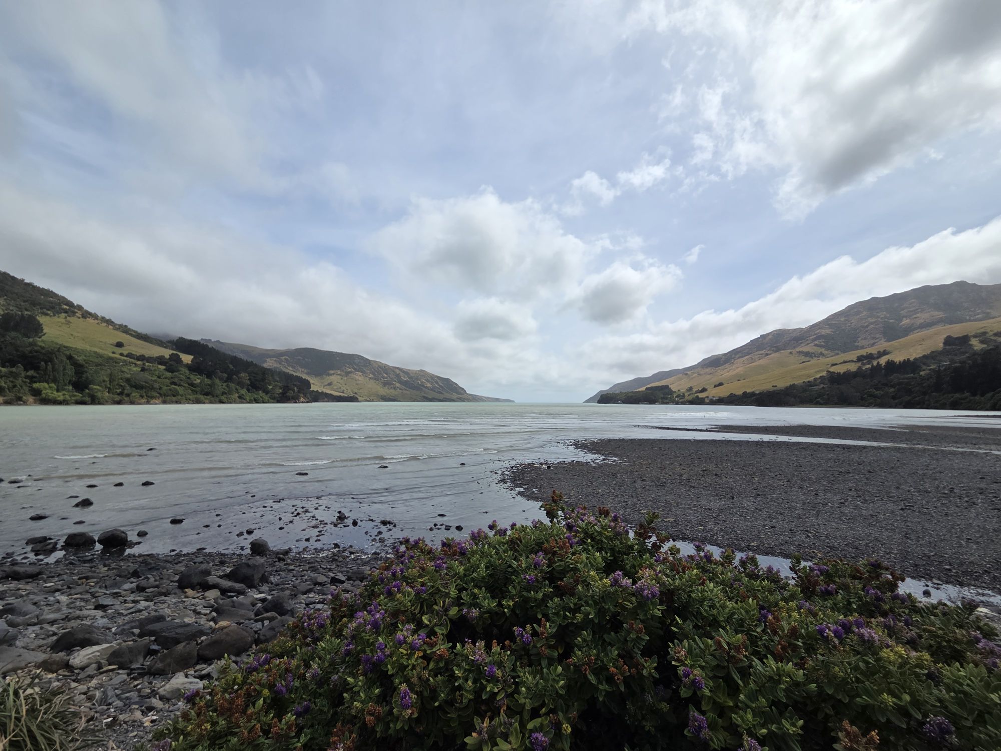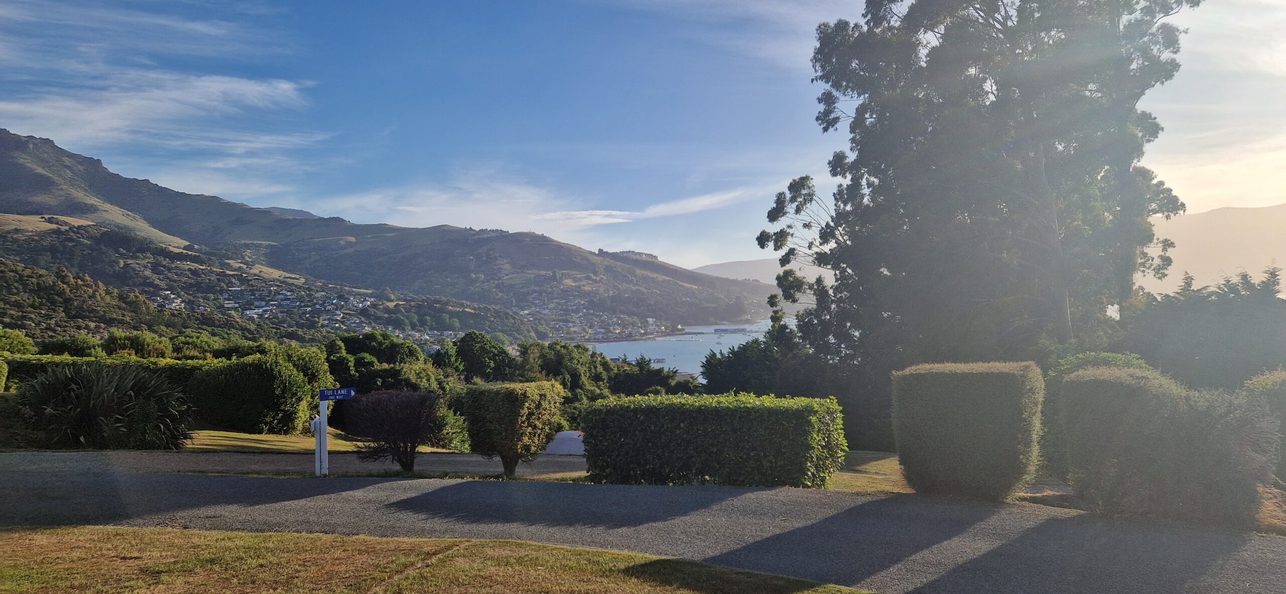 Ad snoede veje kom vi videre til Lyttelton – hvor vi spise de sidste rester i køleskabet med fin udsigt ud over havnen.