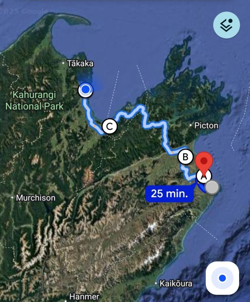 Her smagt vi på 4-5 vine. Efter følgende kørte vi en tur rundt for at se markerne. Inden vi forsatte mod Blenheim og Nelson. I Nelson blev der tanket og købt ind. Og så fortsatte vi mod Kaiteriteri.