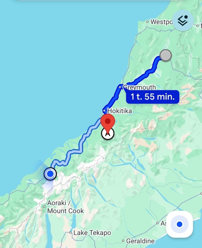 Vi havde booket en helikopter tur med checkin kl 1330 – så turen videre var planlagt så vi kom til Hokitika Grove kl 10 og videre derfra ca 1130.