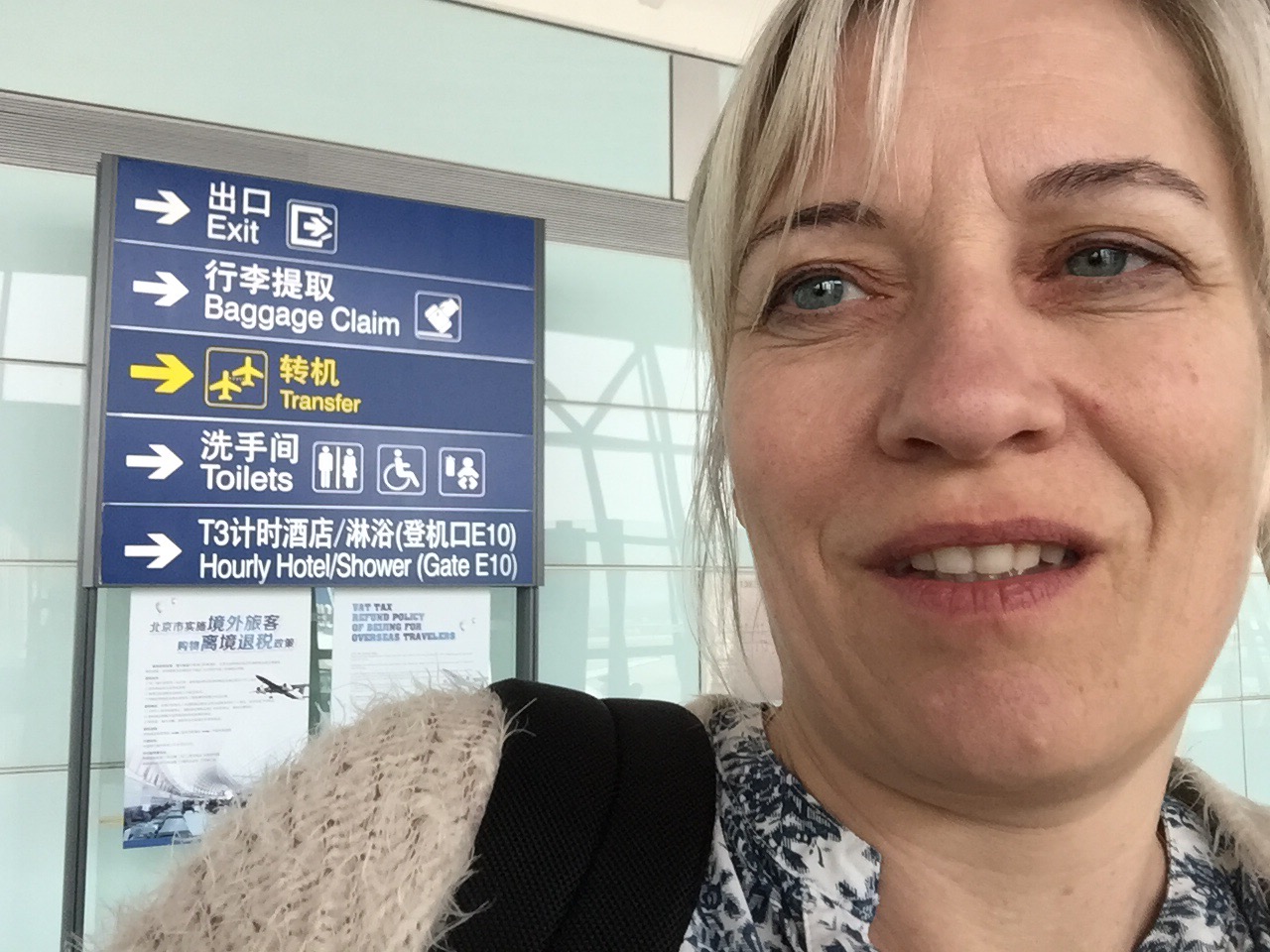 Afgang fra Tirstrup 18.20 søndag den 20. marts. Første hop til Kastrup, her efter fra Kastrup til Beijing andet hop. Afgang kl. 21.05, blev skubbet lidt til 21.15. Sad ved…