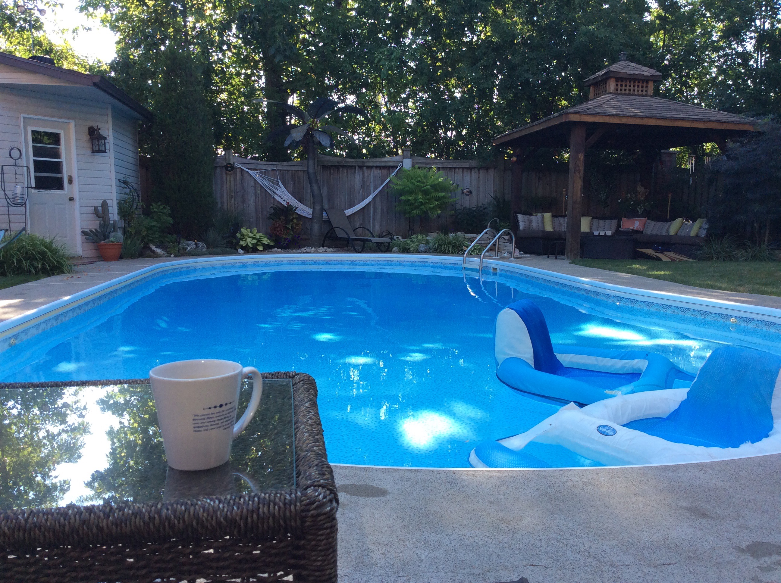 Onsdag den 27. juli Irene diskede op med lækker amerikansk morgen mad, som blev spist på træ terrassen ude i baghaven. Både før og efter var der nogen i poolen.…