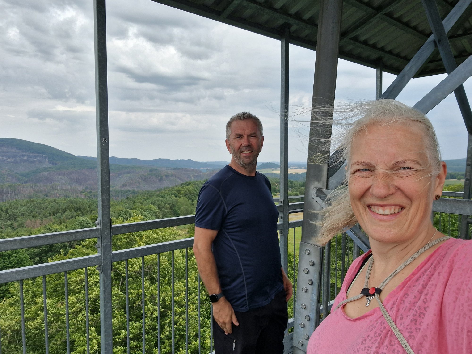 Torsdag kørte vi ud til et steder der oversat fra Tjekkisk hedder snemandstårnet – Děčínský Sněžník der var en storslået udsigt til alle sider fra toppen. Ind mod Dresden og Pirna i Tyskland, samt by Děčín i Tjekkiet og mange bjergtoppe i landskabet rundt om det “Sächsische Schweiz” og “Bøhmisk Schweiz” og “Elbe Sandstone Mountains”