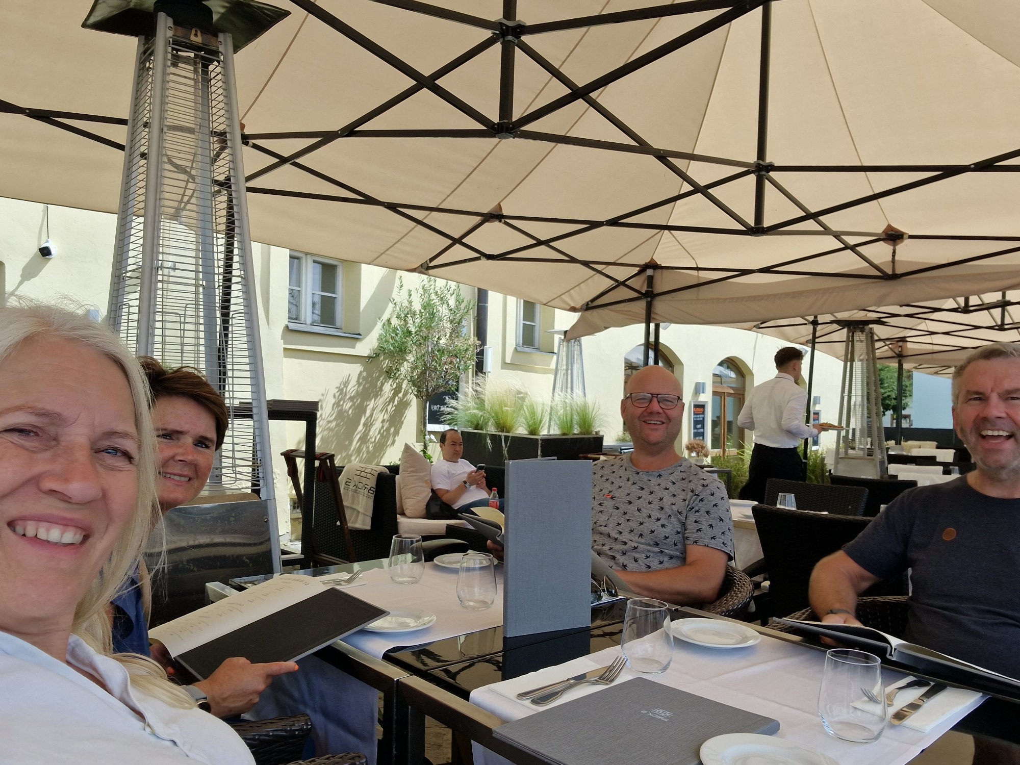 Fredag aftaler vi med Mariann og Thomas at taget til Prag – så det blev en god dag med storby, vi fik set det Astronomiske ur, Karlsbroen og mange af de andre smukke bygninger og kirker. Vi fik en god frokost med bord helt ned til floden.