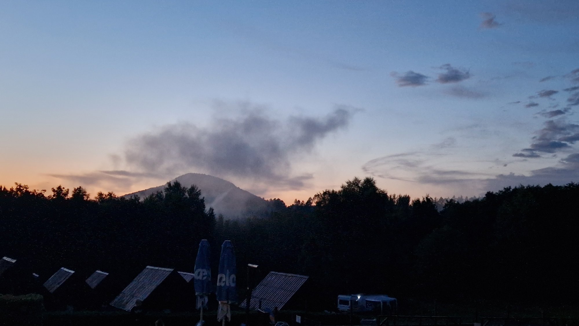 Da det blev aften var vejret egentlig fint og vi besluttede vi ville vente med at tage solsejlet ned – men pludselig ændrede vejret sig, det blæste pludselig op og vi kunne hører torden i det fjerne.