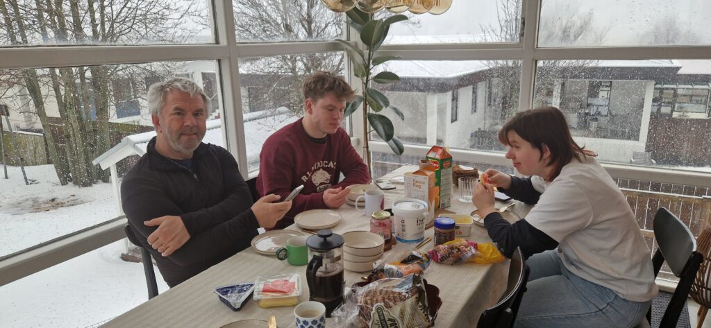 Så da vi andre stod op var Frederik allerede igang med at skrive. Vi fik spist og pakket sammen og var klar til at kører fra lejligheden ca. 10:30.
